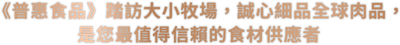 普惠食品企業(yè)股份有限公司於1985年成立至今,致力於提供臺灣食品業(yè)者來自於全球的優(yōu)質(zhì)牛肉、豬肉、雞肉、火雞肉品與海鮮,肉品批發(fā)與肉品加工分切服務(wù),最多元最專業(yè)的肉品進口商與批發(fā)商。